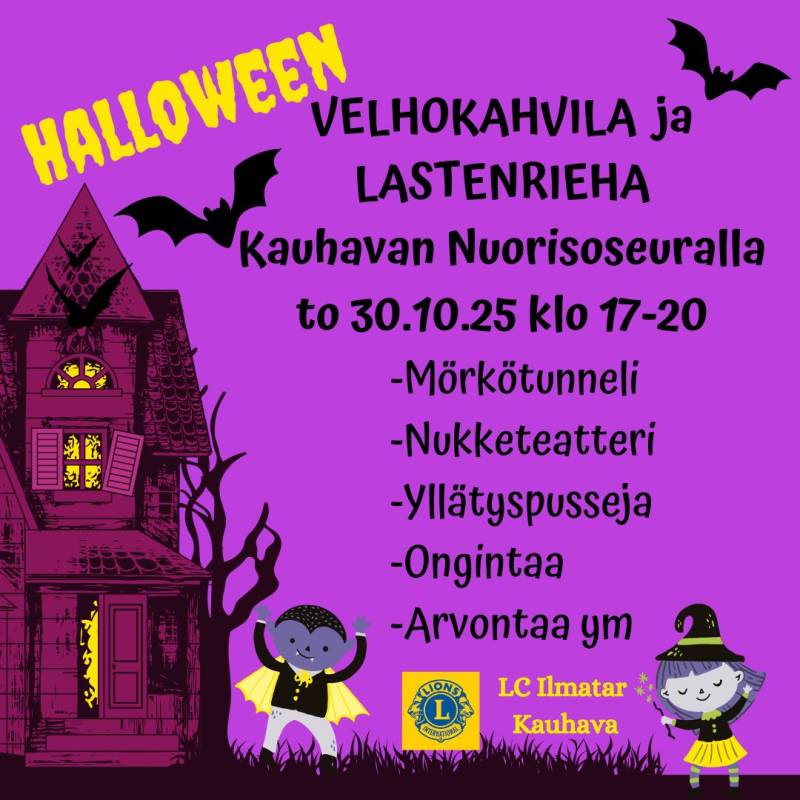 Halloween-torstaina kannattaa suunnistaa Kauhavan Nuorisoseuralle (osoite: Kauppatie 113), jossa järjestetään perinteinen Velhokahvila ja Lastenrieha. Varaa mukaan käteistä, sillä tarjolla on kaikenlaista jännitystä elämään pikkurahalla! Tien toisella puolella sijaitseva kirjasto puolestaan on tunnettu järkyttävästä kauhutunnelista, joka ei sovellu perheen pienimmille. Pikkuväelle onkin mukavaa Halloween-askartelua luvassa sillä aikaa, kun teiniosasto kirkuu kirjaston kalmistoissa.