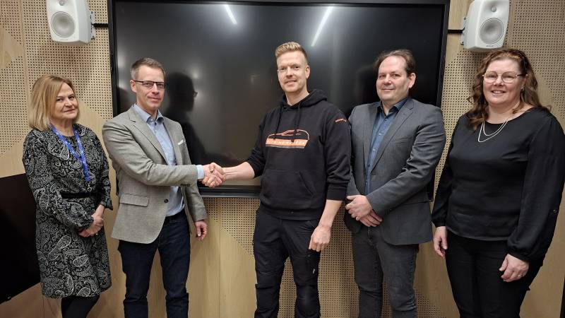 Kauppakirjan allekirjoitustilaisuudessa 19.12.2025 henkilöstöpäällikkö Jaana Sandström, kaupunginjohtaja Vesa Rantala, Kauhavan Vesi Oy:n hallituksen puheenjohtaja Ville-Pentti Heikkilä, toimitusjohtaja Tomi Saari sekä kaupanvahvistajana maankäyttöpäällikkö Päivi Raski.