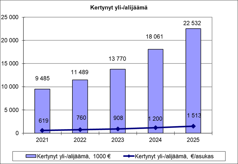 Tilikauden ylijäämä 4,5 miljoonaa euroa kasvatti taseen kertyneen ylijäämän 22,5 miljoonaan euroon eli 1.513 euroon/asukas.