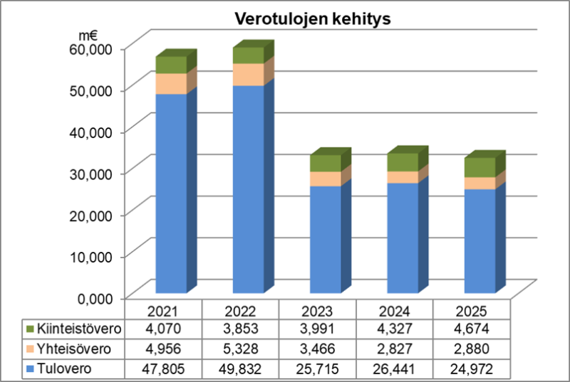 Verotulot ovat vuodesta 2021 alkaen kehittyneet seuraavasti: