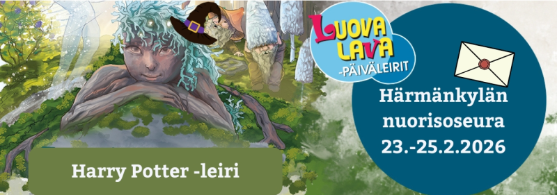 ILMOITTAUTUMINEN 16.2.2026 mennessä tästä linkistä: Ilmoittaudu: Harry Potter-leiri Härmänkylässä (23.02.2026 09.00)